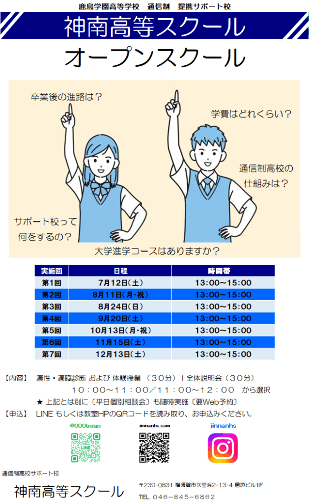 神南高等スクールは鹿島学園校高等学校 通信制のサポート校です。